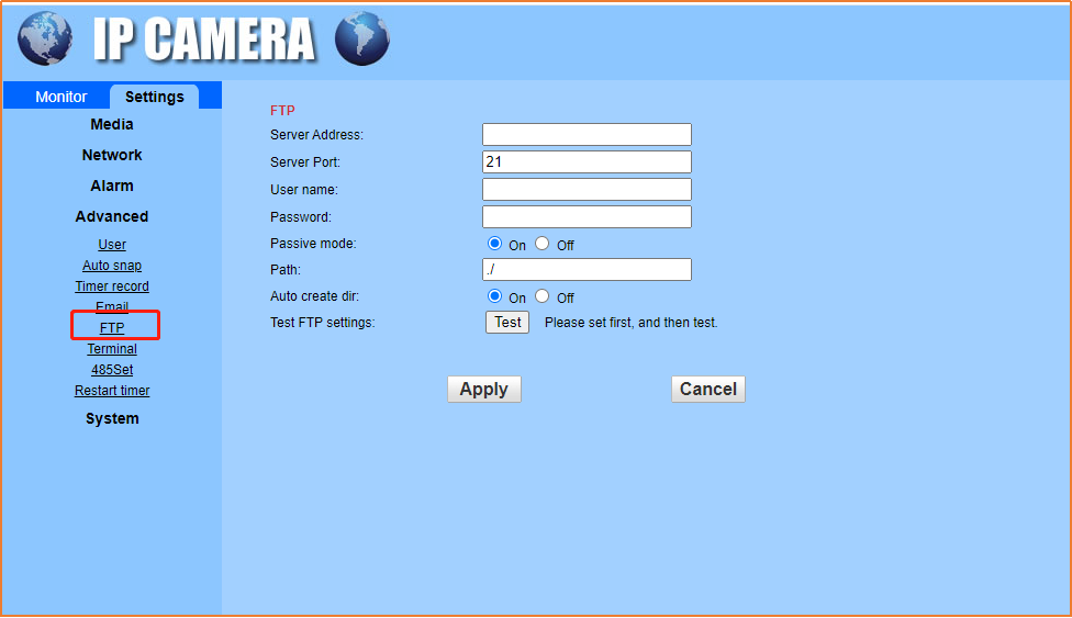 FTP parameter settings