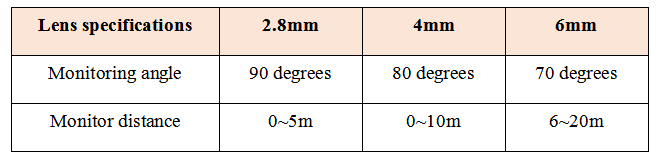 Lens: 2.8mm/4mm/6mm