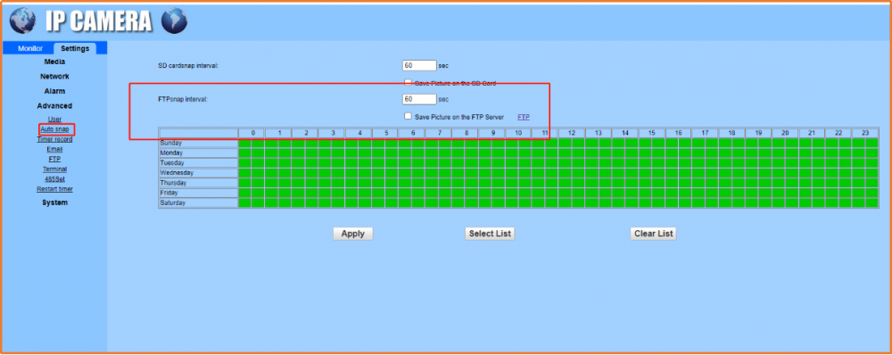 Capture photos can be stored to SD card or uploaded to FTP server at any time and interval.