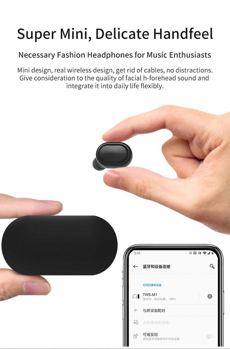 Home > Products > Other > M1 Portable Tws Headphone Wireless Bluetoth 5.0 Earphone Mini Earbud With Mic Charging Box Sport Headset For Smart Phone