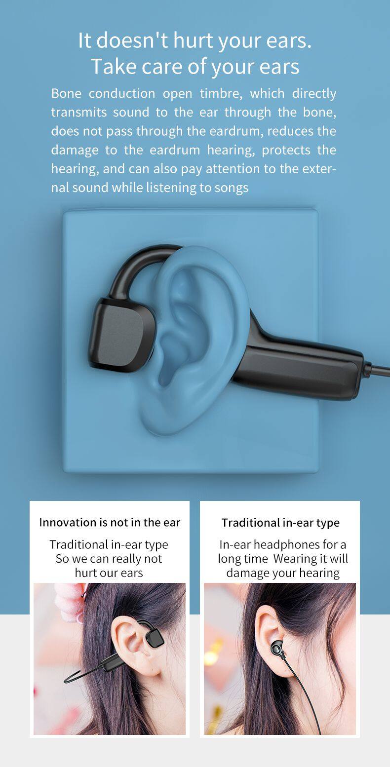 Bone Conduction Headphones BT5.0 Wireless Wear Open Ear Hook Light Weight Sports Earphone