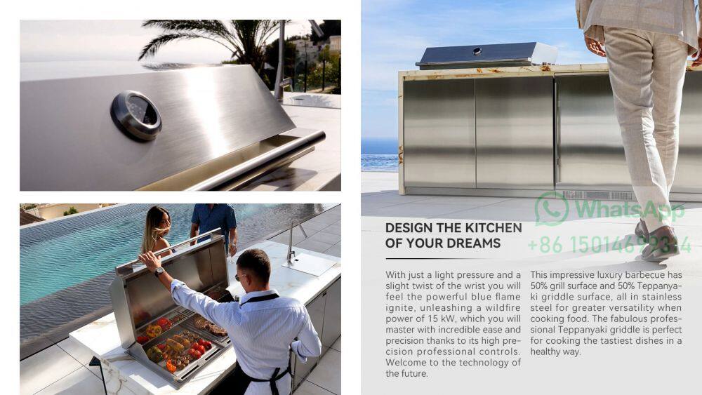 - Customized Luxury Outdoor Stainless Steel Kitchen Cabinets With Gas Stove and Bbq Grill