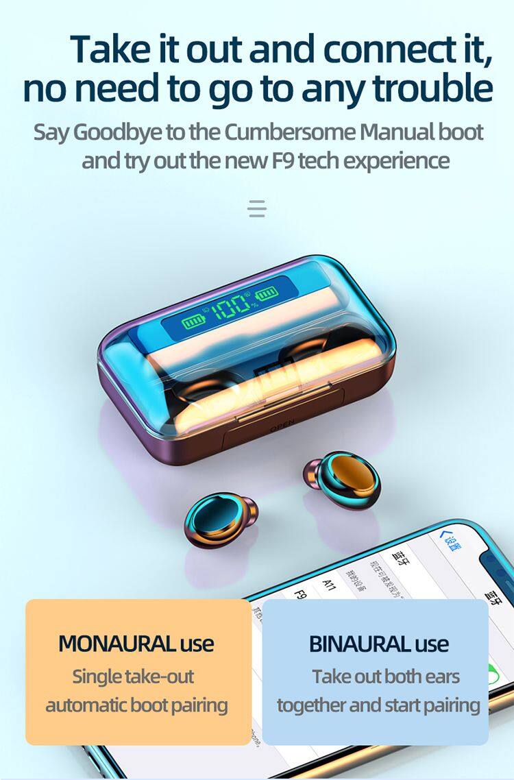 2023 F9 USB 5.3 Tws USB Earphone Wireless Earbuds With LED Battery Display Screen Auriculares F9-10
