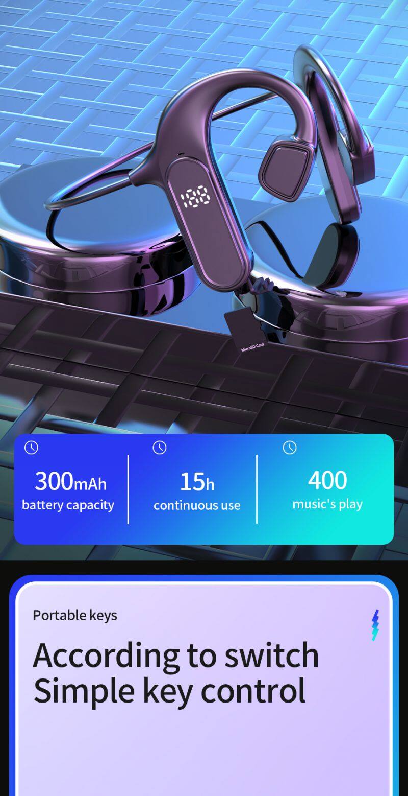 Home > Products > Other > High Quality Bone Conduction Headphones Digital Display Earphones Portable Ear Wireless Bone Conduction Headphone