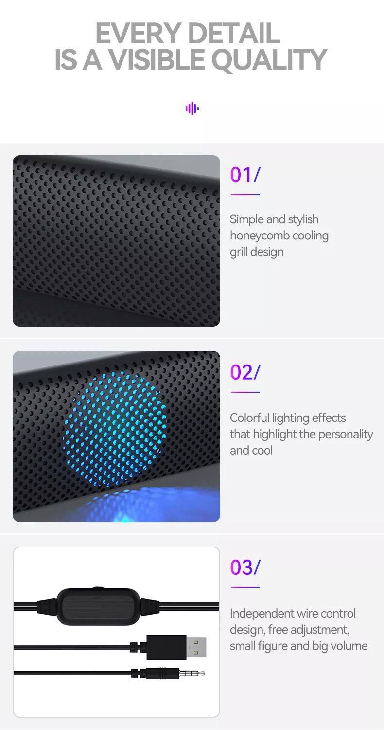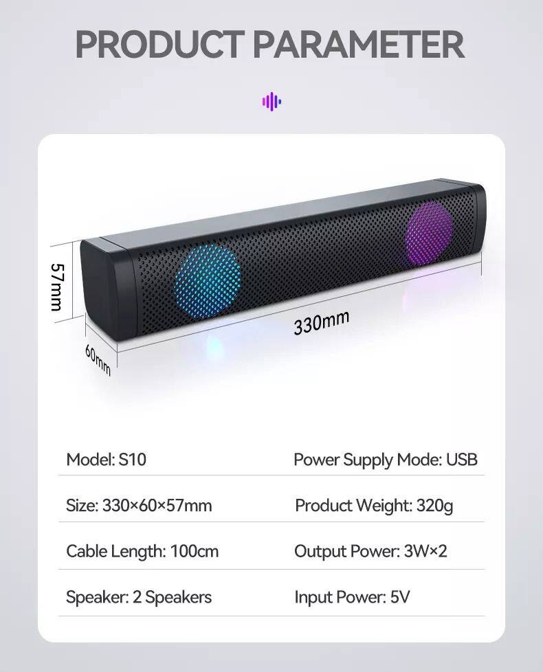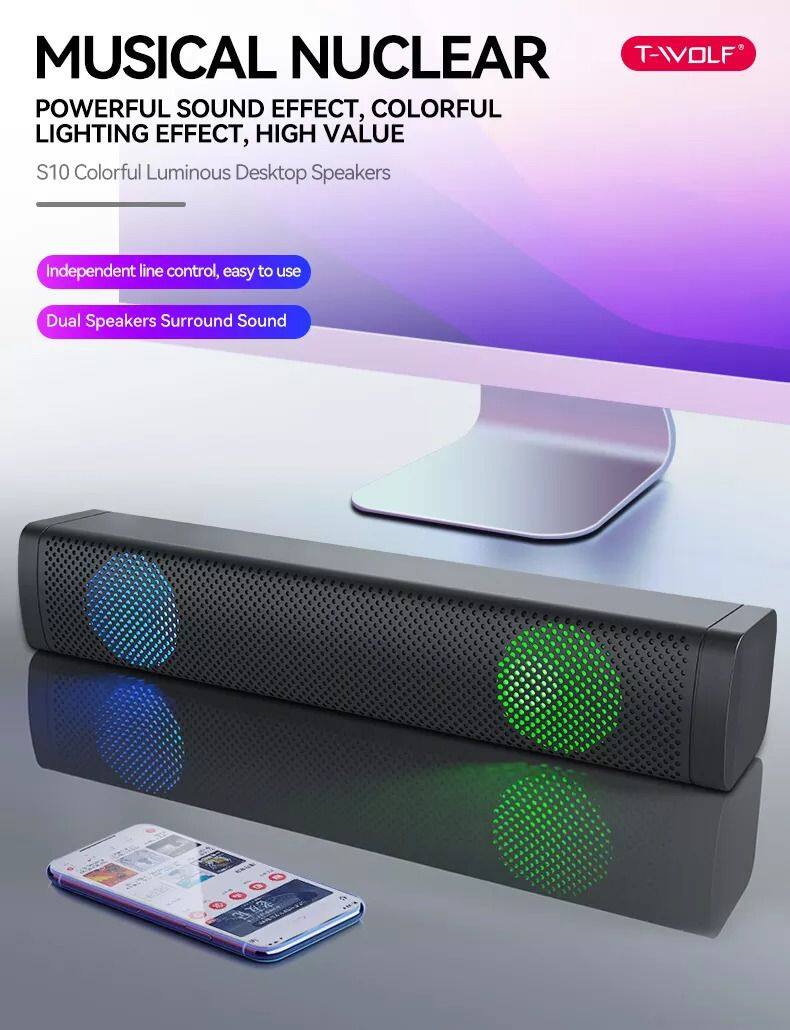New Design S10 Computer Speaker Desktop Colorful Backlight Waterproof Wired Hi-fi Sound Noise Canceling Smart Home Speaker