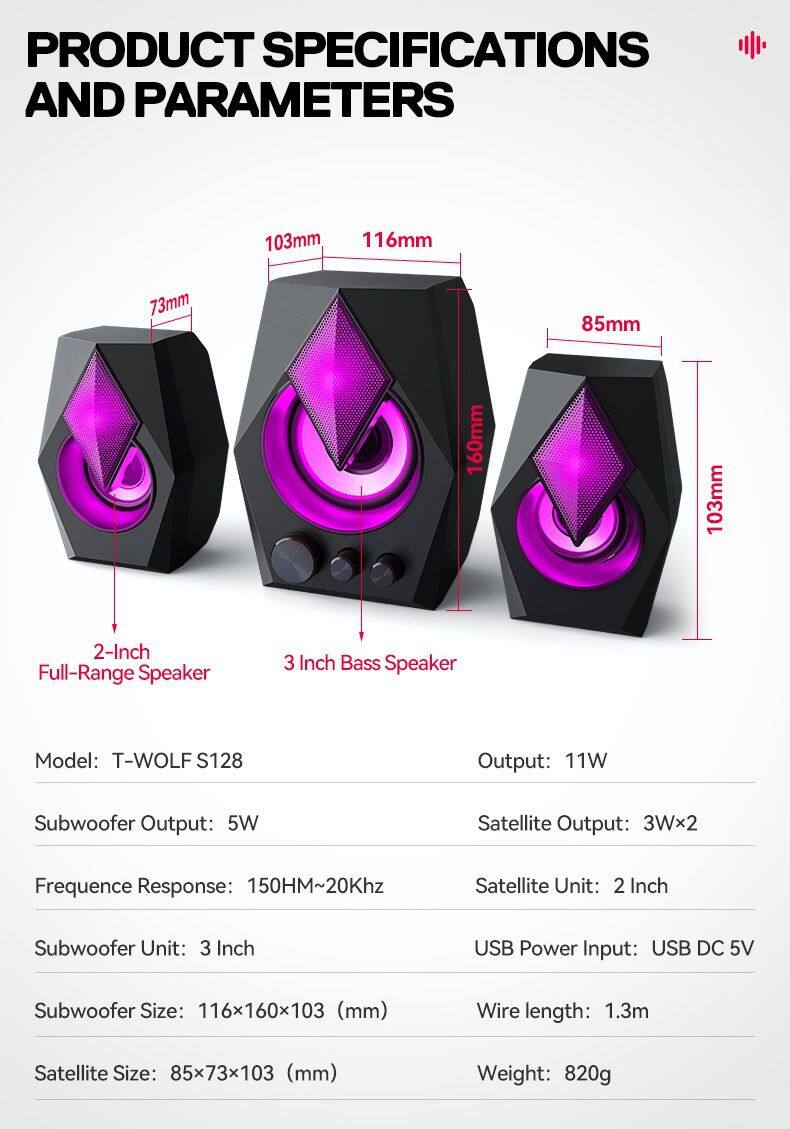 Professional Big Power S128 2.1 Computer Wired Speaker Hi-fi Audio System Multimedia Waterproof Portable Smart Speaker
