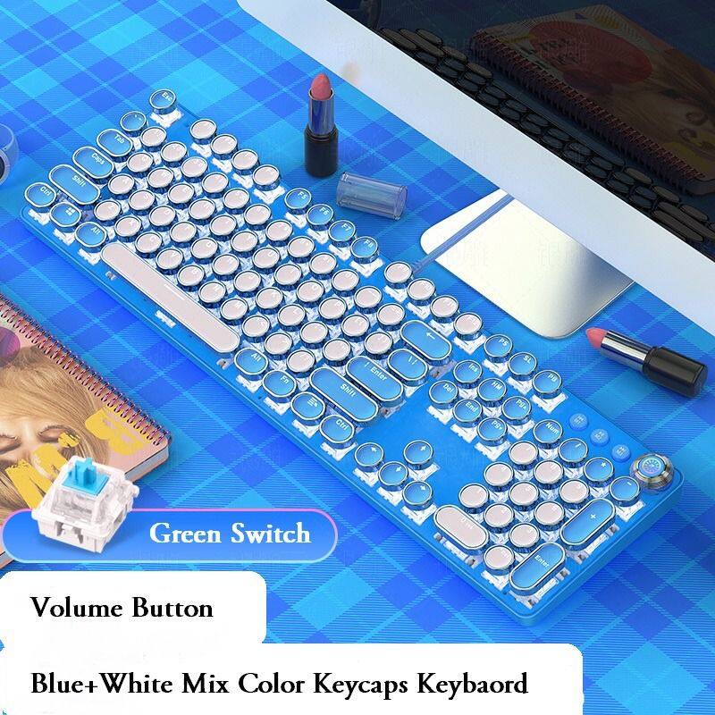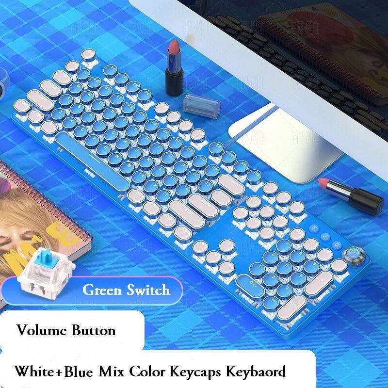 Hotswappable Keyboard Volume Button White+blue Mix Color Keycaps Keyboard Usb Wired Mechanical Gaming Keyboard