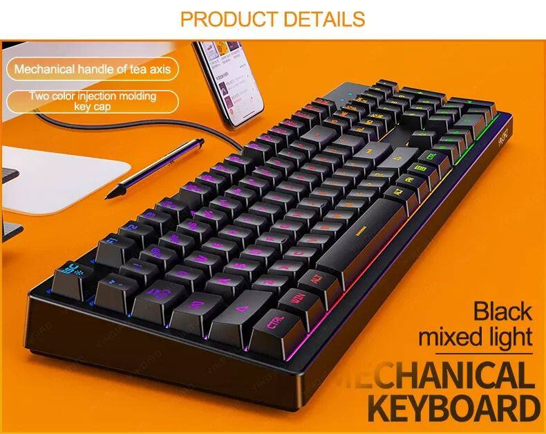 Amazons Hot Selling FV-Q302 Mechanical Keyboard Wired Tablet Gaming Lighting Keyboard for pc