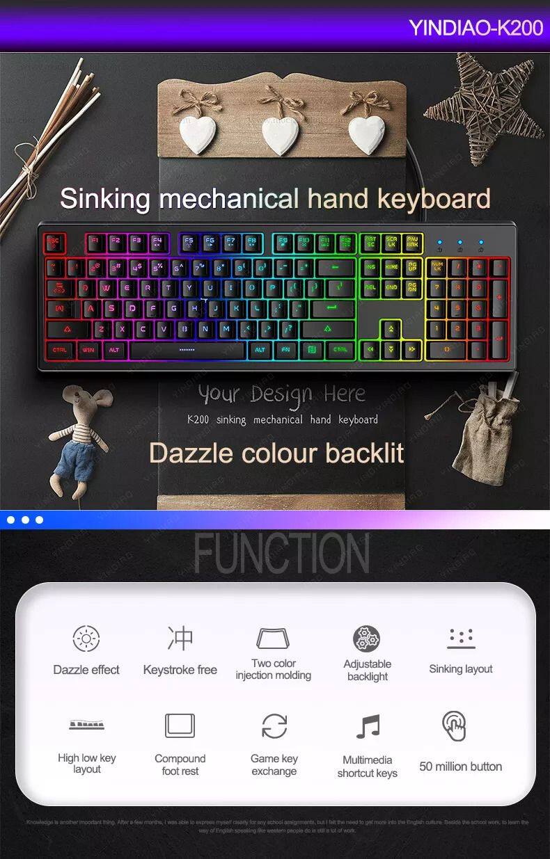 2023 K200 Mechanical Keyboard Rgb Rainbow Backlight Gaming Wired Usb Office Silent Portable Wireless Number Keyboard