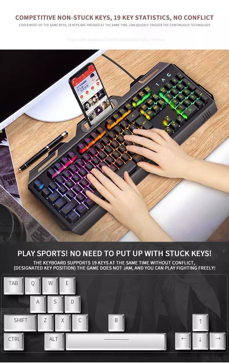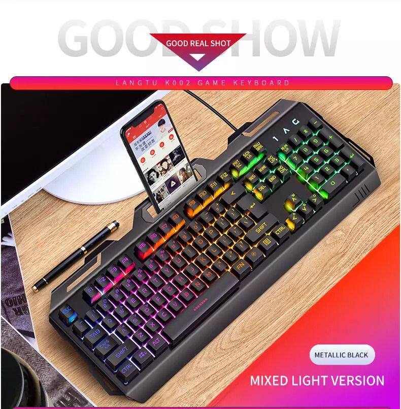 Home > Products > Other > Metal Panel V2 Waterproof Gaming Keyboard Rainbow Backlight Portable Keyboard With Exclusive Mobile Phone Holder