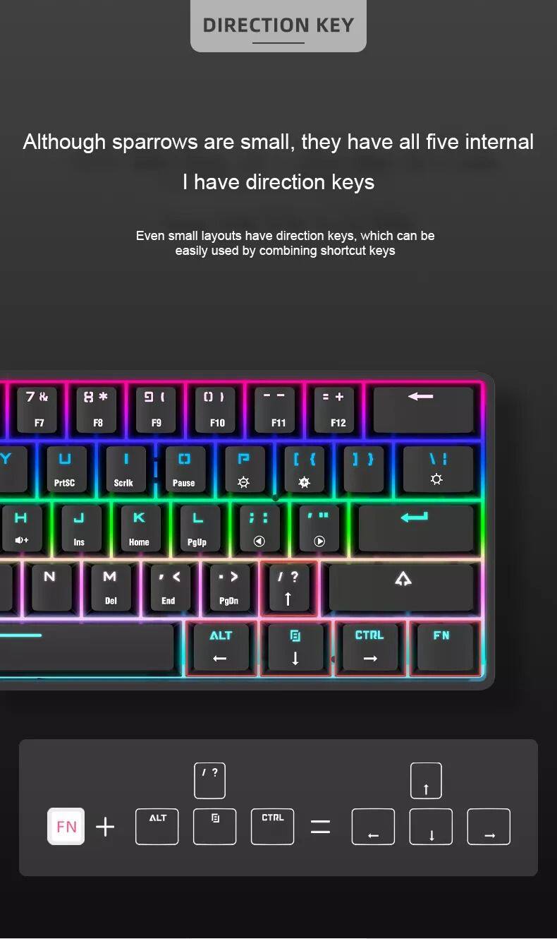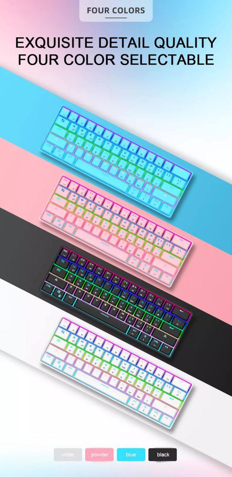 Home > Products > Other > New Color FV-DK61 Keyboard Wired BT Dual Mode Gaming Mechanical 61 Keys Led Backlit Keyboard for Gamer Adjustable Light Gaming