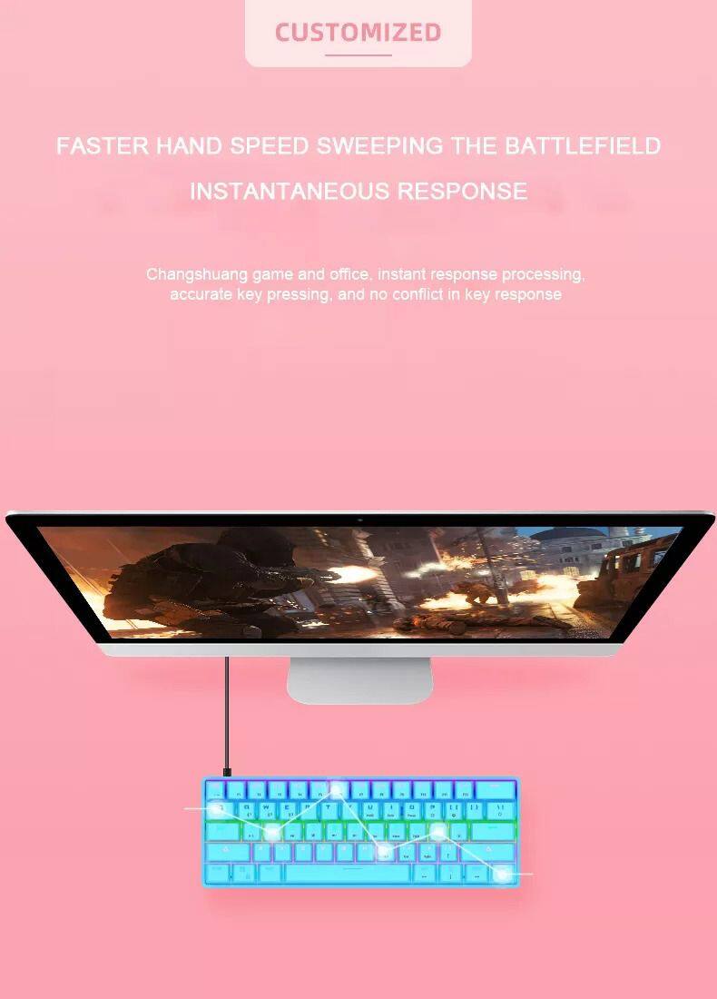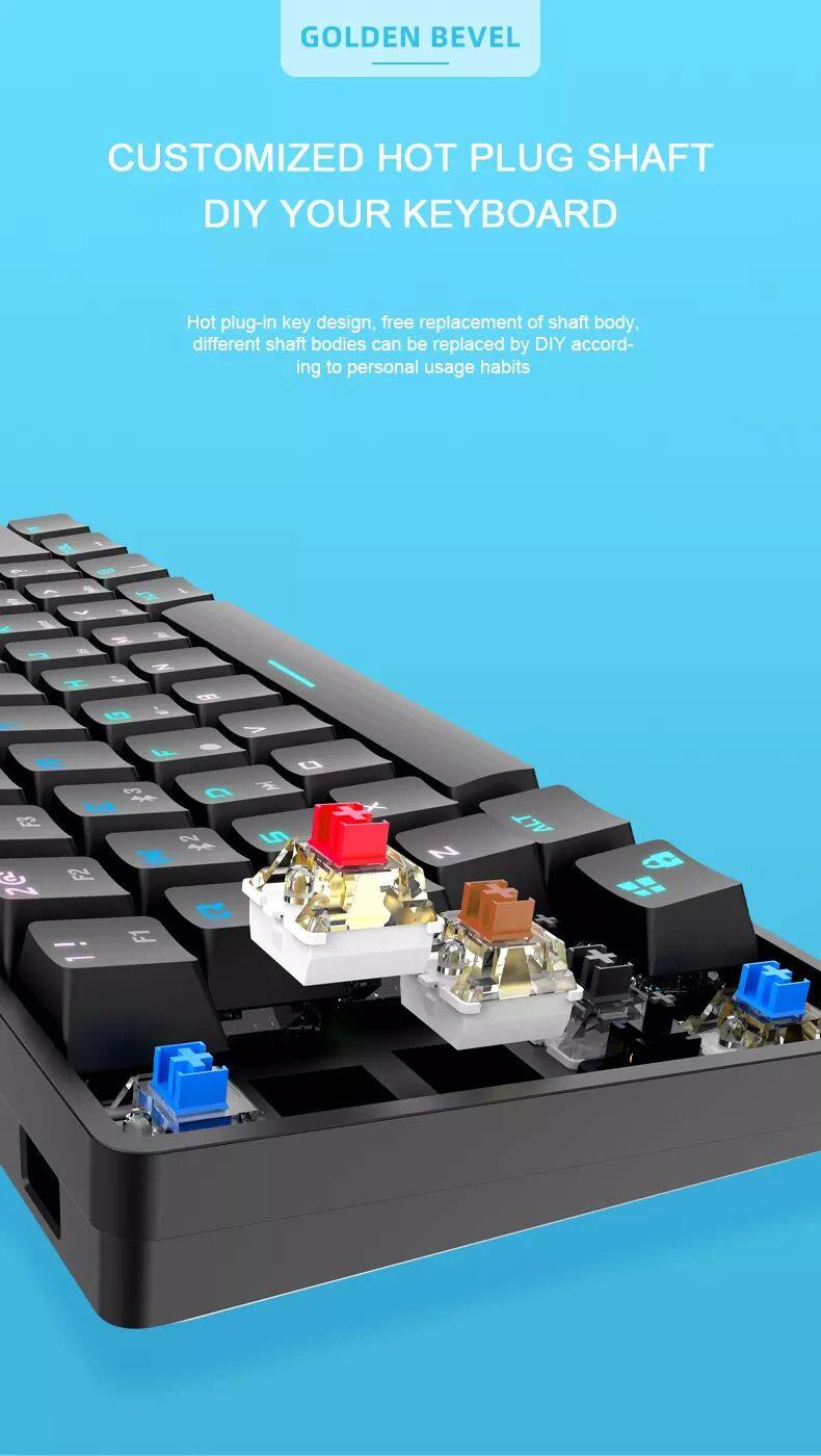 - 2023 Free Wolf T60 Mechanical Keyboard Color Matching Customized Notebook Office Computer 62 Keys Russian Luminous Game Keyboard