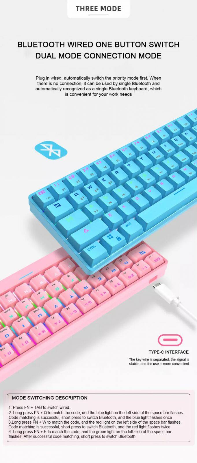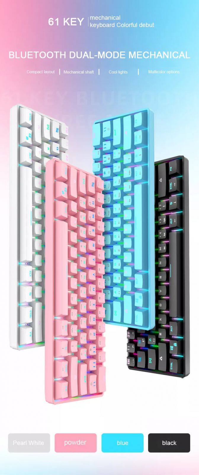 New Color FV-DK61 Keyboard Wired BT Dual Mode Gaming Mechanical 61 Keys Led Backlit Keyboard for Gamer Adjustable Light Gaming