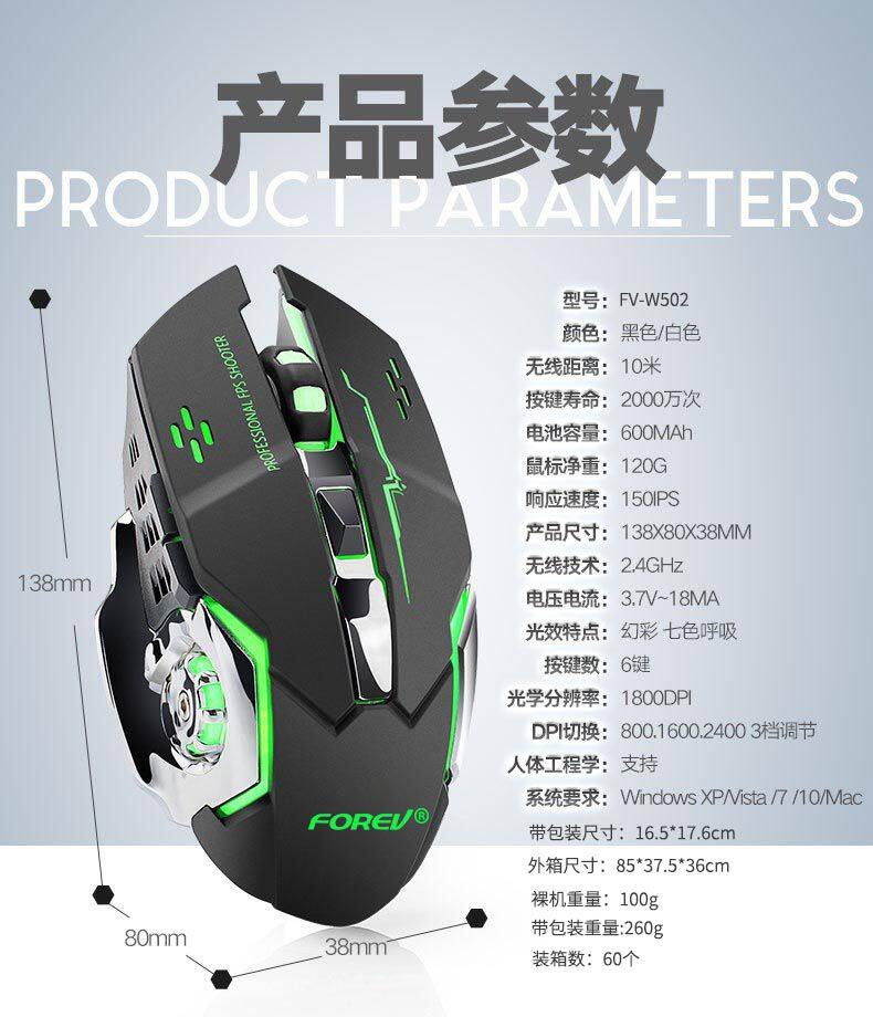 Home > Products > Other > Best Selling FV-W502 Mouse 2.4ghz Wireless Gaming Luminous Mouse Rechargeable Silent Mouse