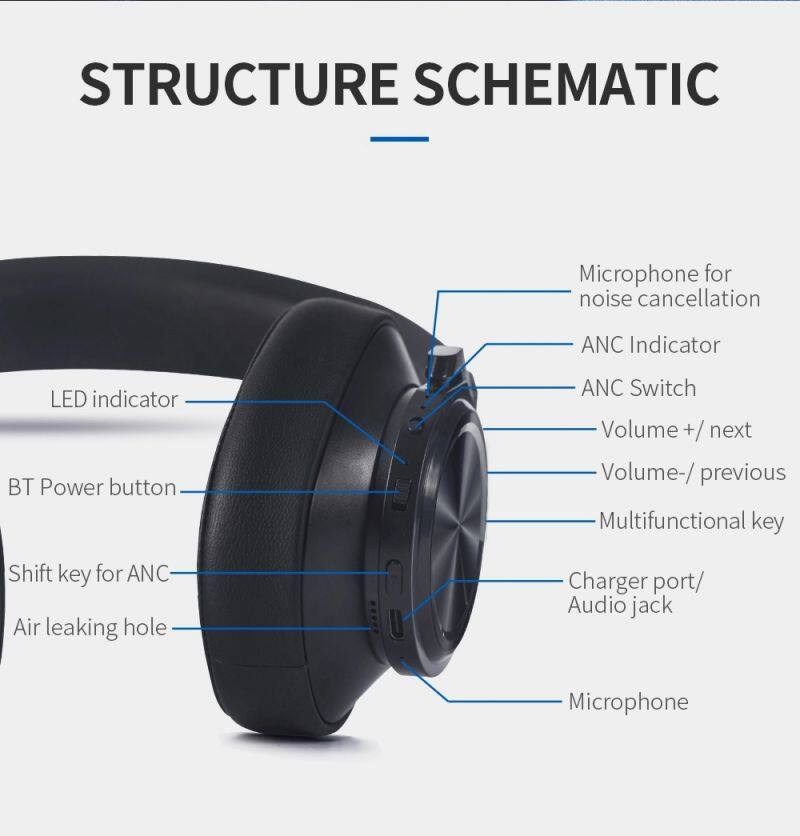 Bluedio T7 Headphones TWS 5.0 Active Noise Cancelling Headset Headphone for Phones