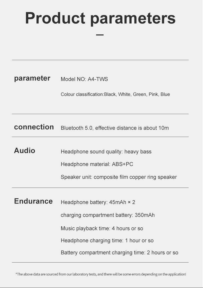 TWS A4 BT 5.0 True Wireless Earphone Mini Cordless Earbuds With Mic Handsfree Headphone For Xiaomi IPhone Samsung