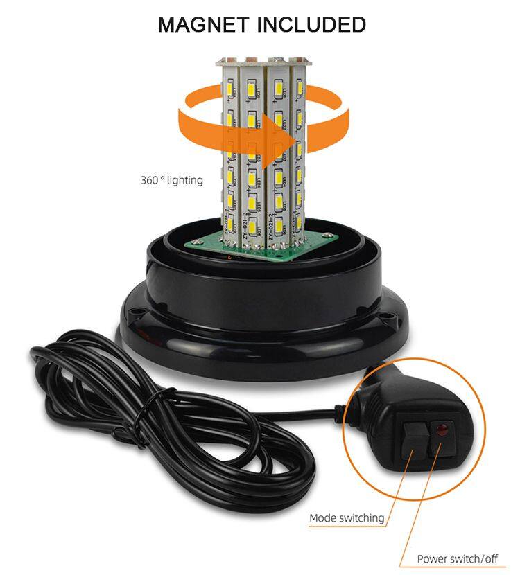 Led Emergency Beacon Rotating Magnetic Car Roof Warning Engineering Yellow Strobe Lights