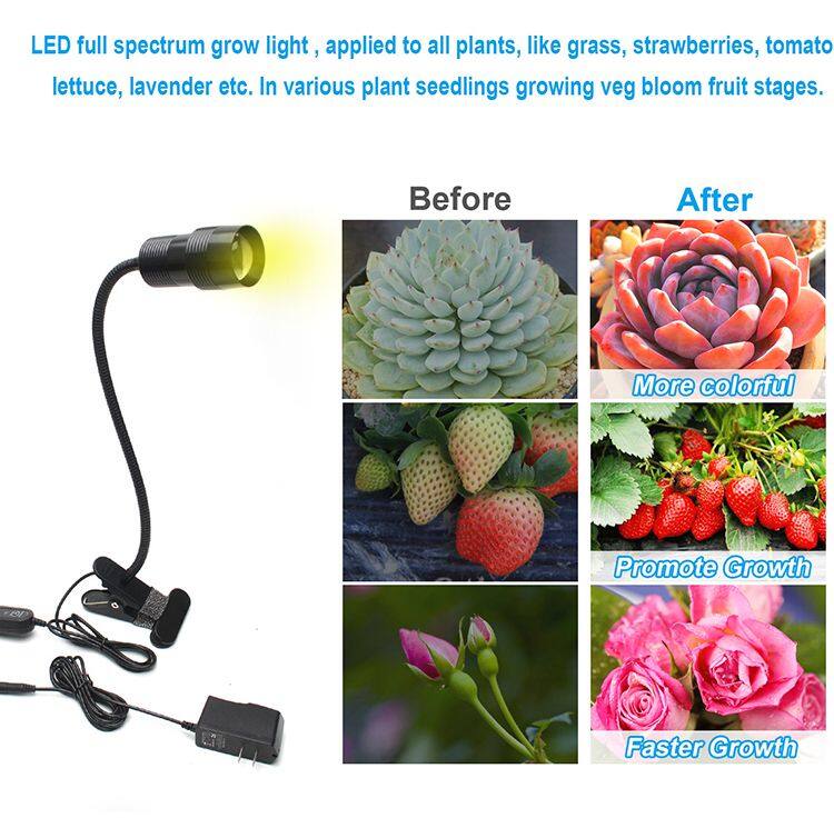 LED Plant Grow Light Gooseneck One Head Clip-on Plant Lights for Seedlings Succulents Growing Lamp