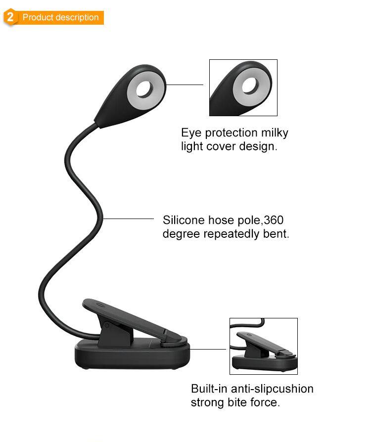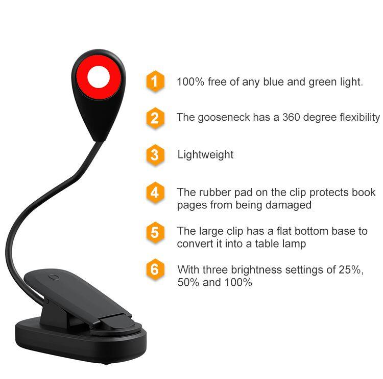Blue Light Blocking Clip Book Light With 360 Flexible Neck and Long Battery Life Usb Reading Light