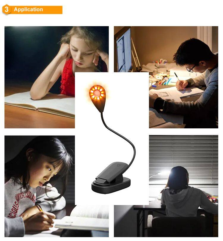 Home > Products > Other > 3 Colors Book Light Round Dimmable Clip No Blu-ray 12 LED Reading Book Lamp