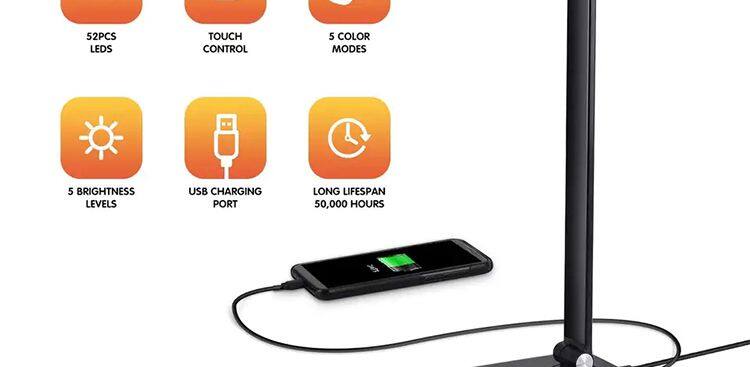 Long-lasting LED Table Lamp With 52 Leds and USB Charging Port Desk Lamp With Wireless Charger