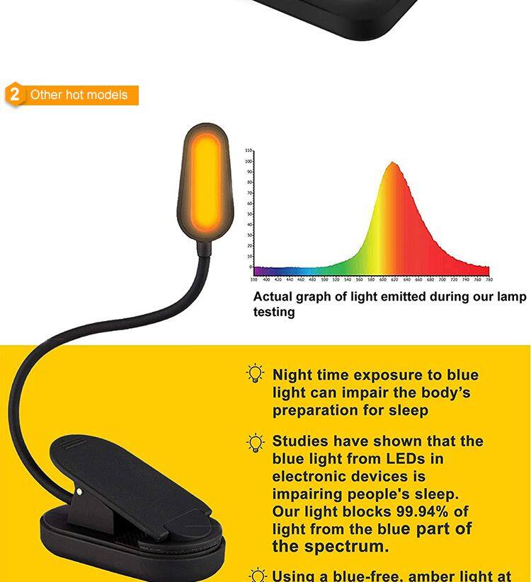 Hot Selling 1600k Stepless Dimming Mini Clip Reading Book Lamp for Strain-Free, Healthy Eyes. Gift for Students,