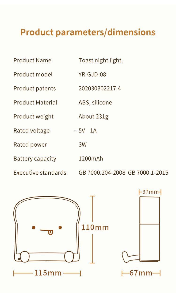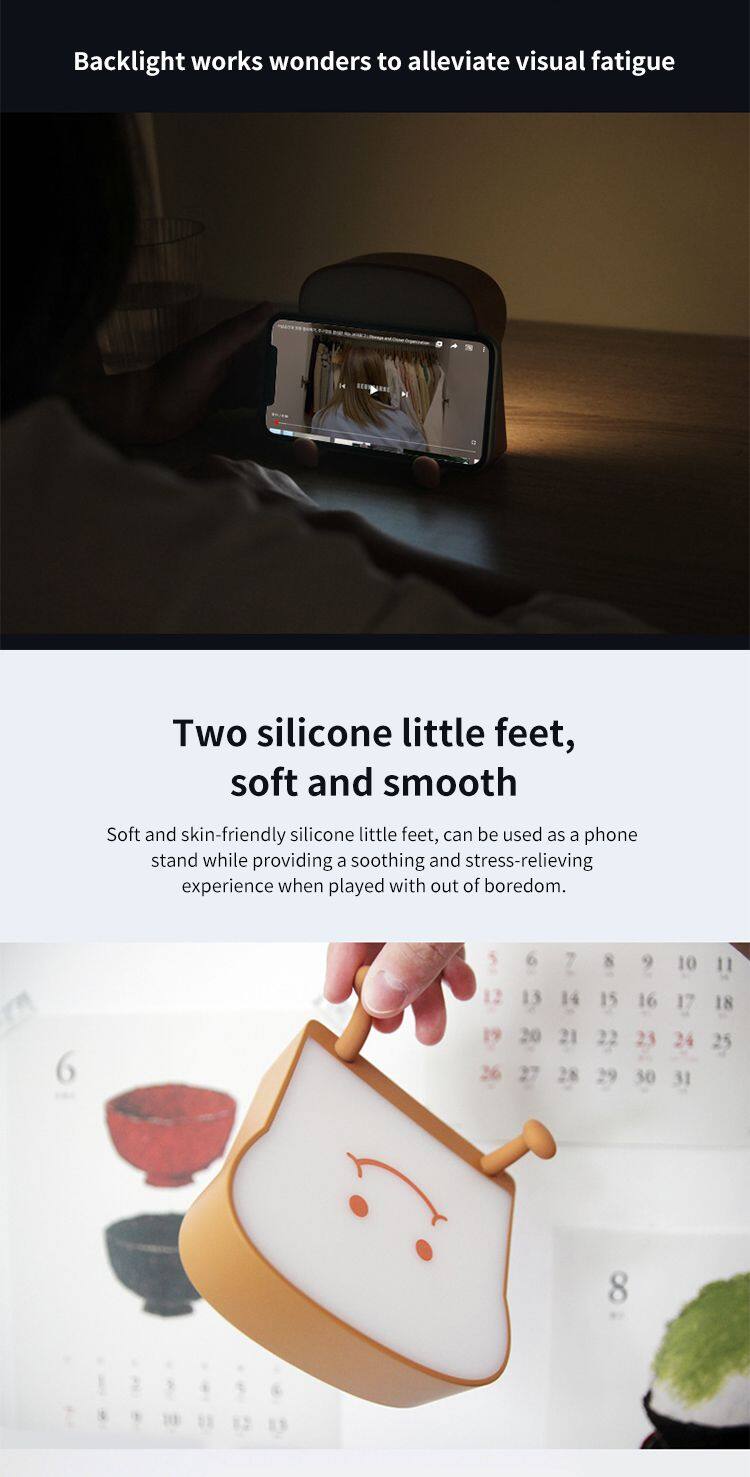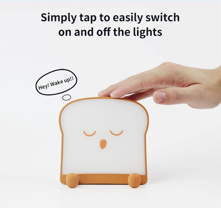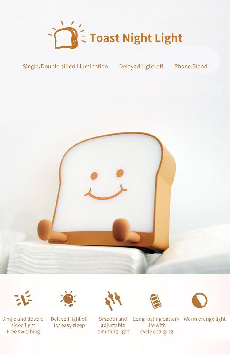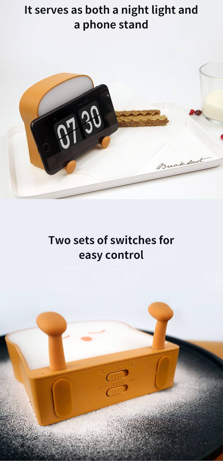 Home > Products > Other > Cute Night Light Cartoon Toast Bread Led Lamp Mobile Phone Holder Bedroom Bedside Silicone USB Atmosphere Light Birthday Gifts