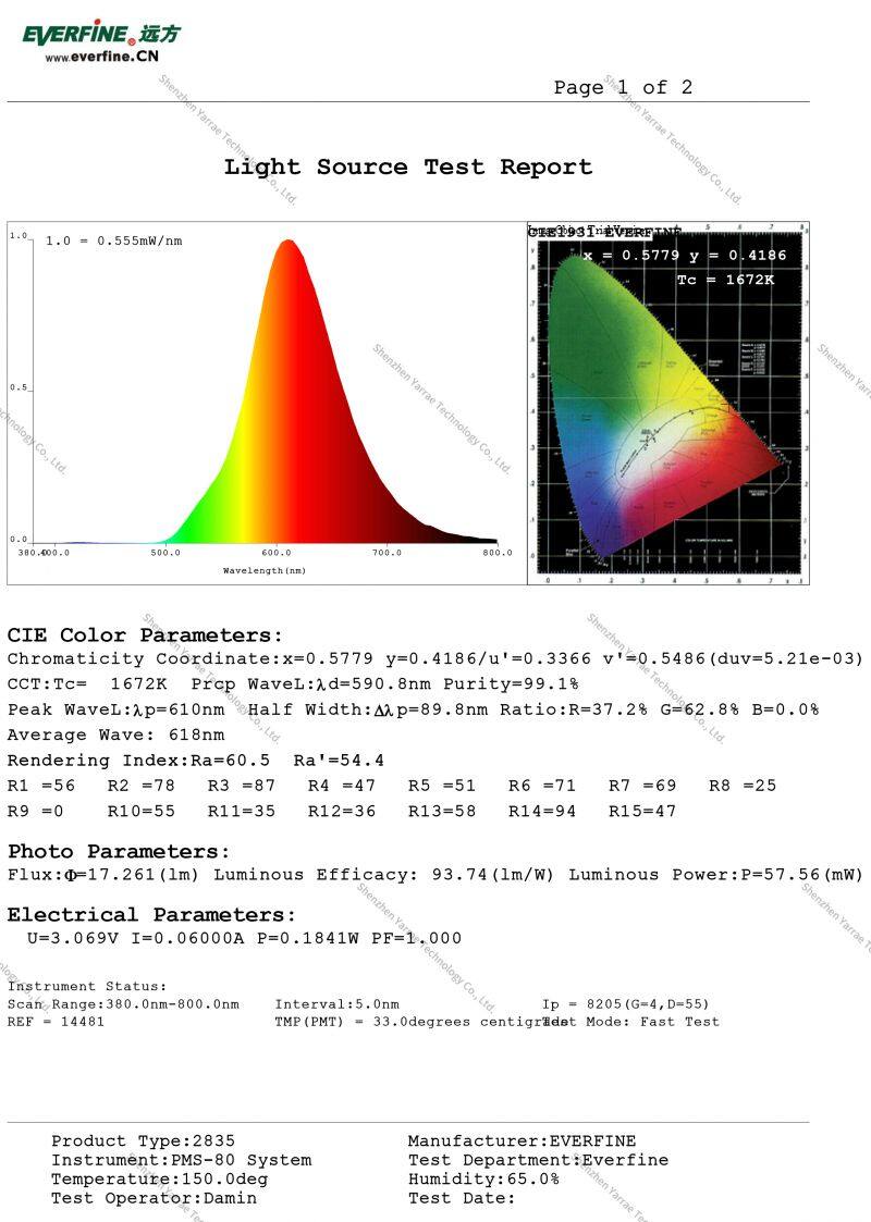 Product test report: LED Photometric Colorimetric and Electric Test Report