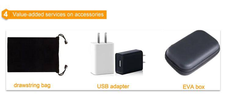 Useful accessories includes USB adapter, drawstring bag, Eva box, thanks card, etc