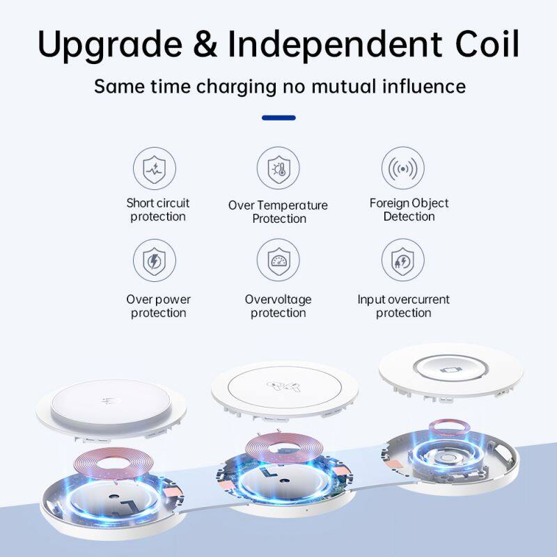 Feature | 1:15W Fast wireless charger,Compatible with 10w. 7.5w,5w. 2: 5W wireless charging For AirPods 3: 2.5W wireless charger for iWatch 4: Foldable Wireless Charger | ||||||