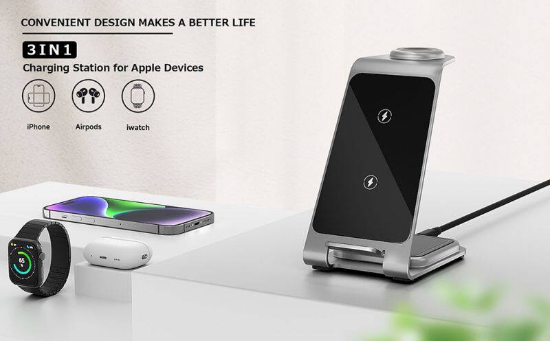 New 2023 Products Aluminum 3 In 1 Wireless Charger Stand Wireless Charger Station 3 In 1 For Iphone 15