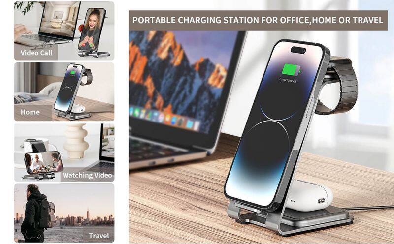 New Portable Travel Wireless Charger Station 3 In 1 Wireless Charger Charging Dock Stand Pad