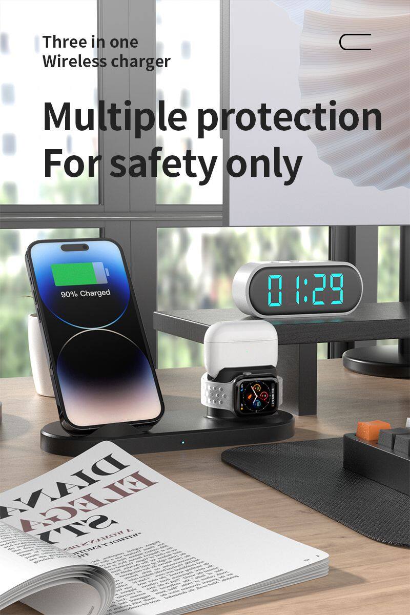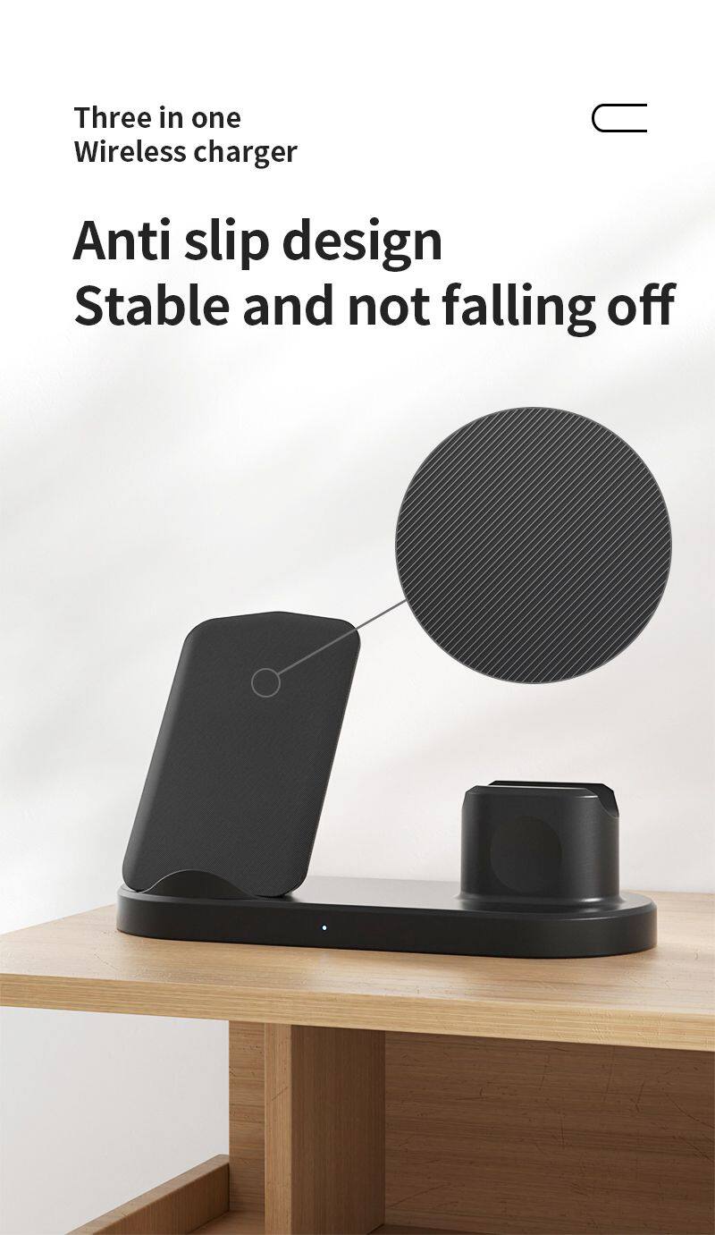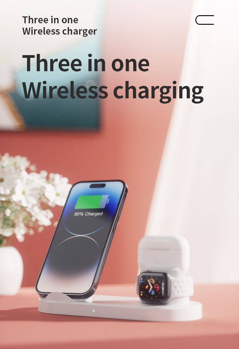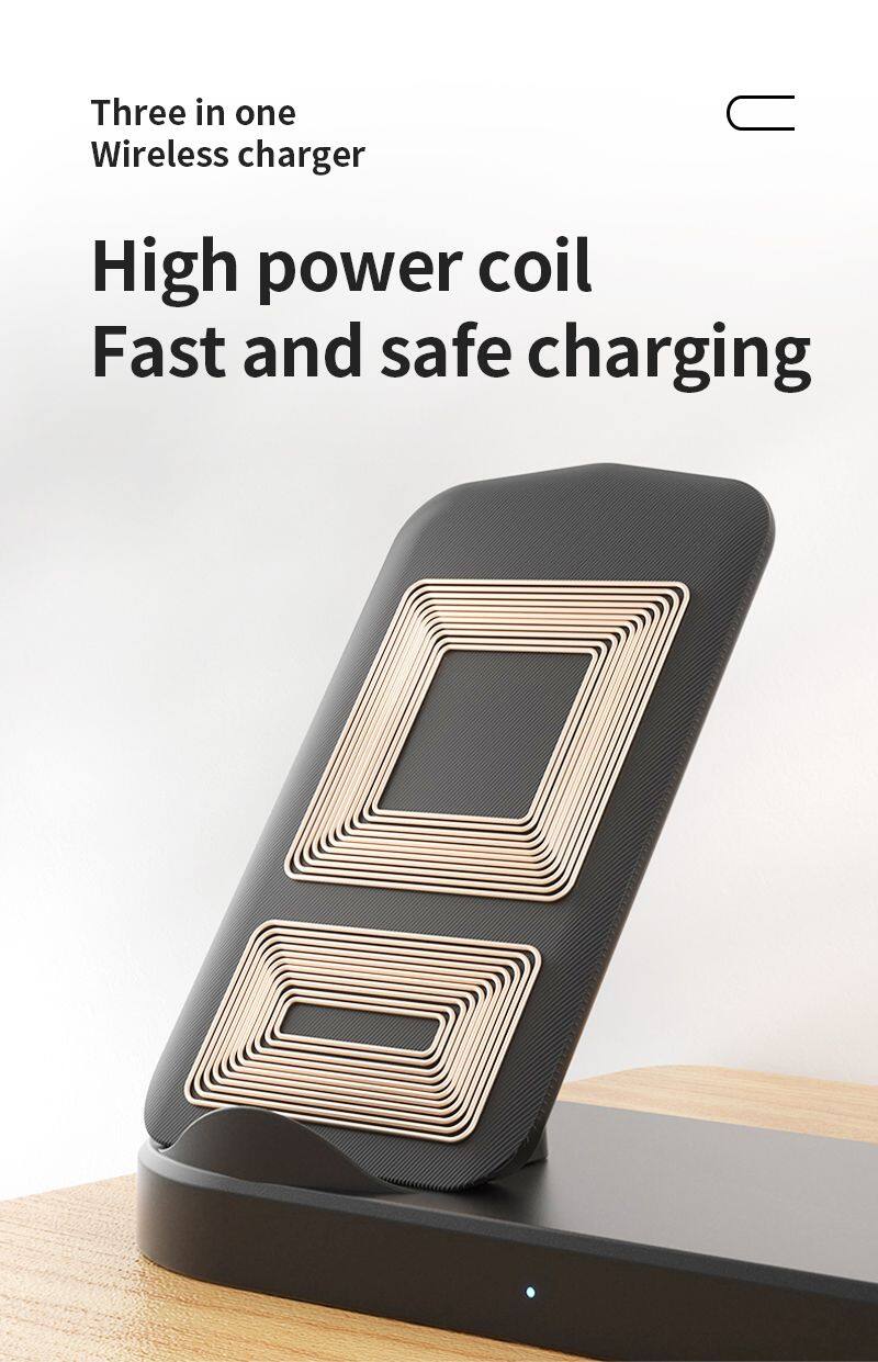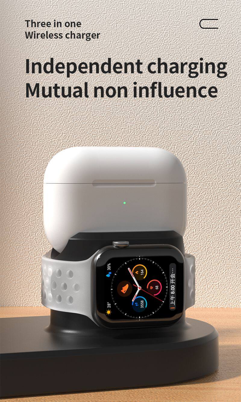 Feature | 1:15W Fast wireless charger,Compatible with 10w. 7.5w,5w. 2: 3W charging port For AirPods 3: 2.5W wireless charger for iWatch | ||||||