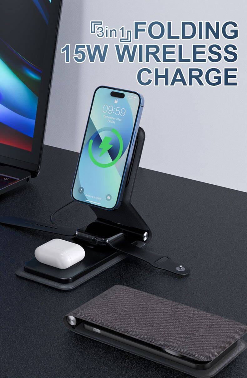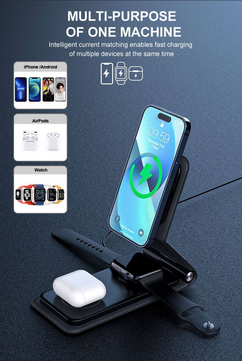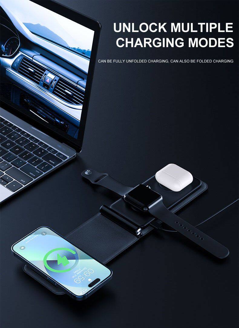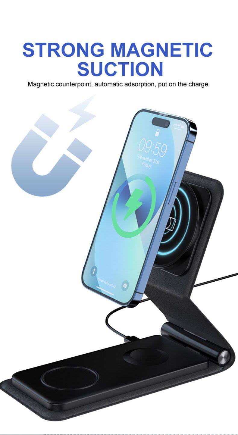 Portable 3 in 1 Wireless Charger Mobile Phones Foldable Fast Smart Magnetic Charging Convenient for IPhone 15 14