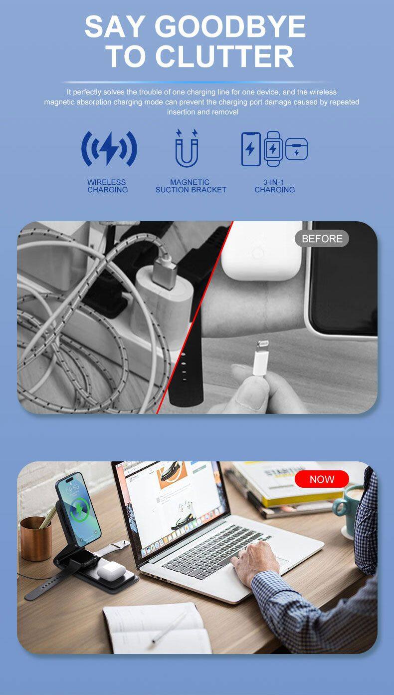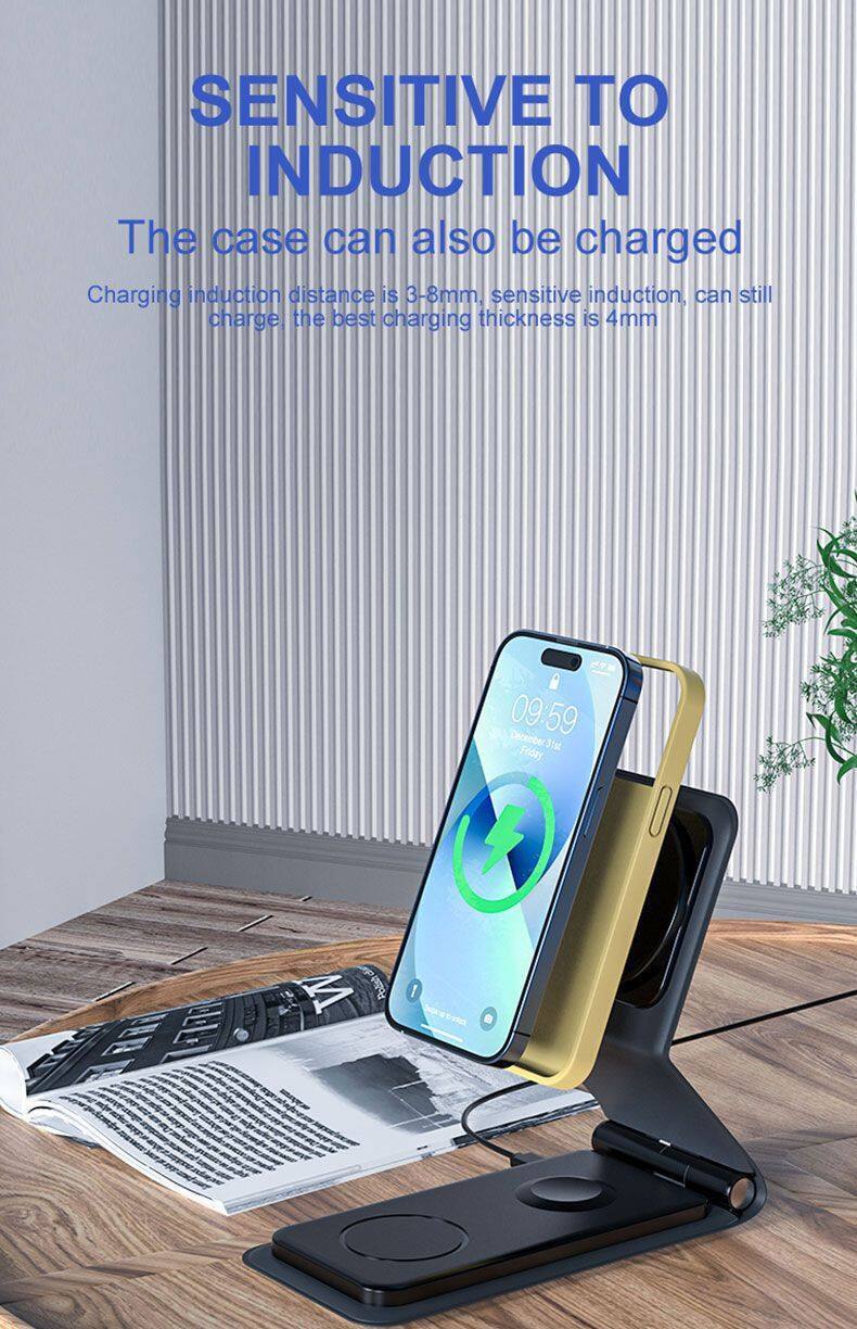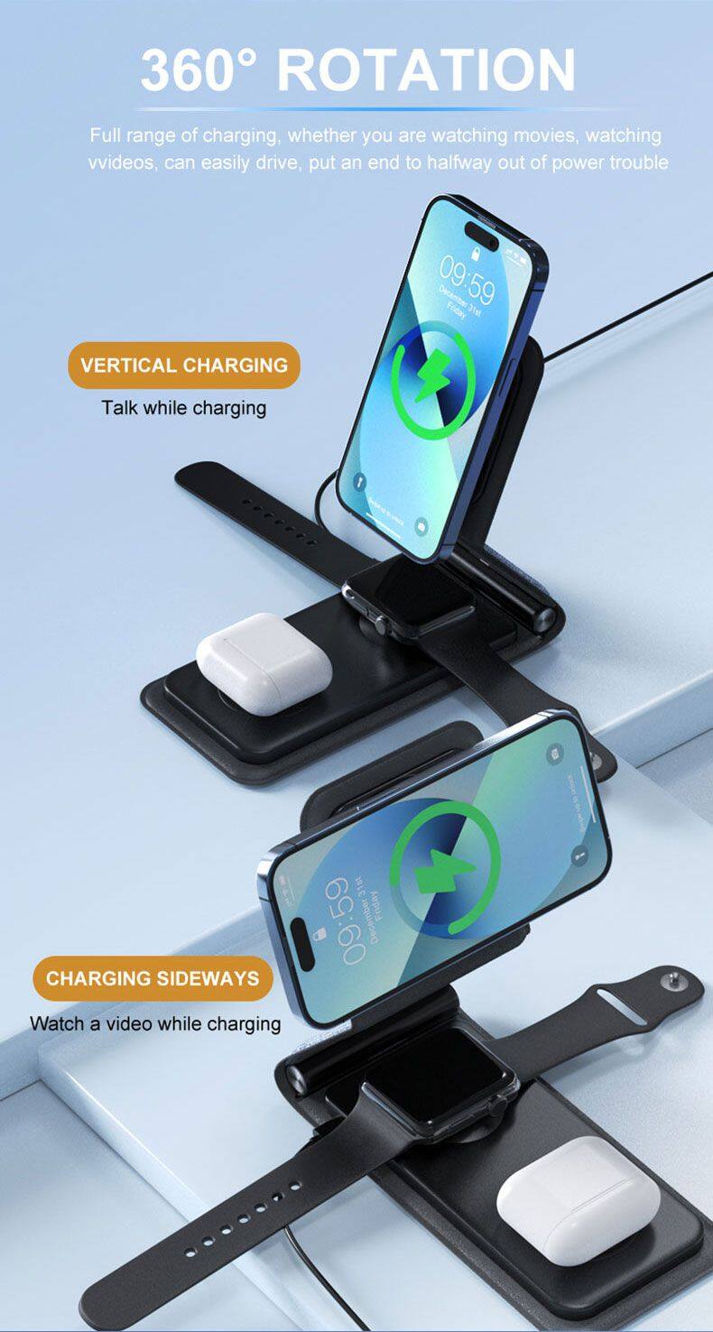Portable 3 in 1 Wireless Charger Mobile Phones Foldable Fast Smart Magnetic Charging Convenient for IPhone 15 14
