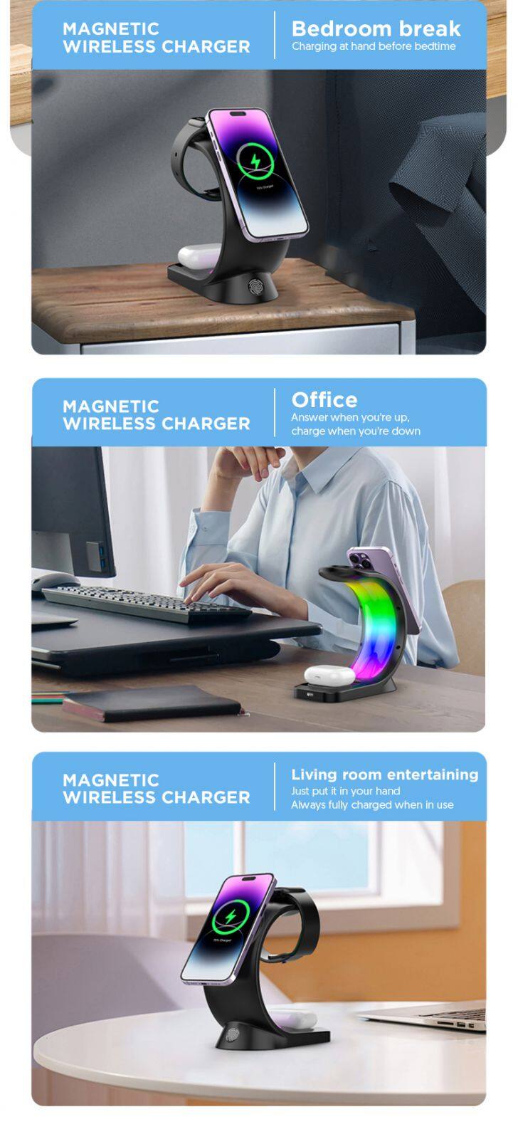 Feature1 | 1 :15W Fast wireless charger,Compatible with 10w.7.5w,5w. 2 :Wireless charging For AirPods 3 : wireless charger for iWatch. | ||||||