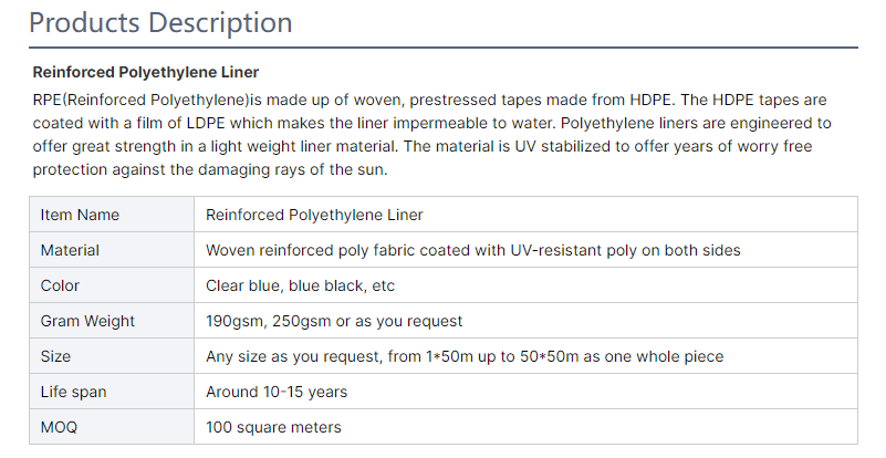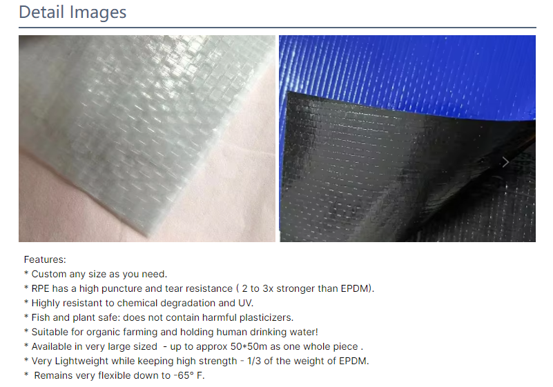 Black Blue Agriculture Reinforced Polyethylene Pond Liner 250GSM Waterproof Membrane For Fish Pond 20*30M
