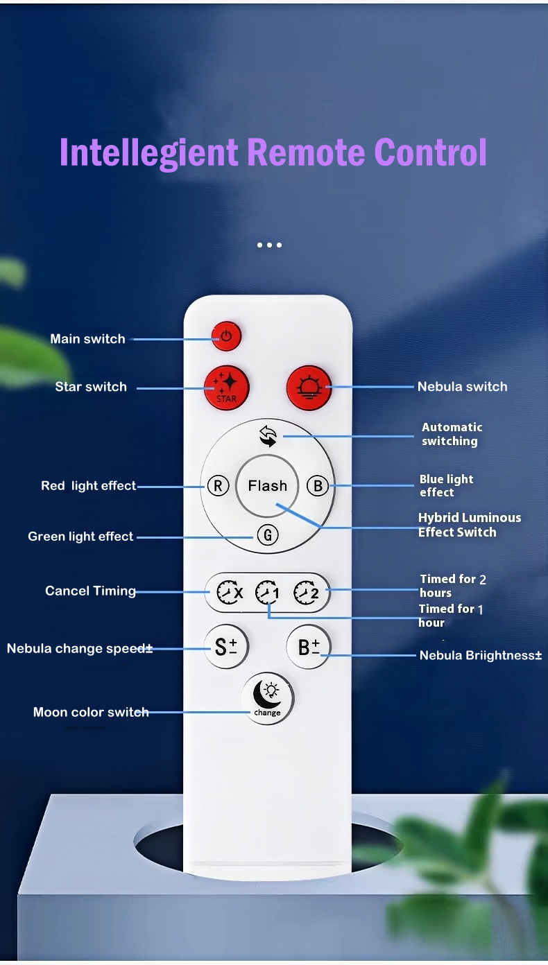 Function | 360-degree Rotating, Remote Control,Timing, Star&Nebula Projection |