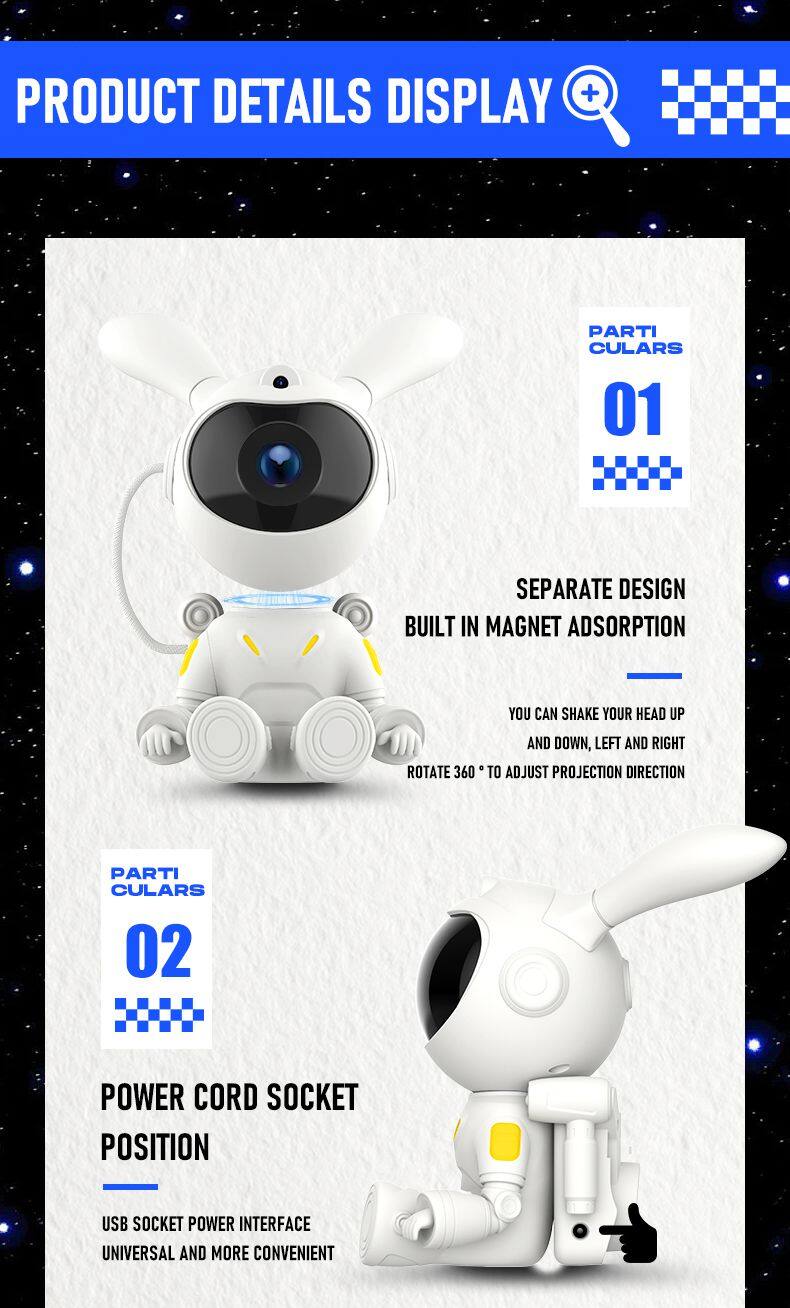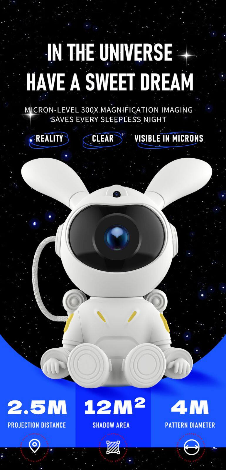 Cute Rabbit Astronaut Starry Sky Projector Galaxy Star Projector With BT Speaker Remote Control Night Lamp Unique Gift For Kids