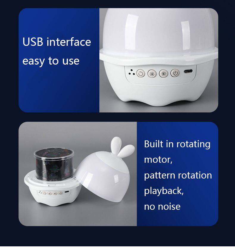 Lucky Rabbit Projector Lamp HD Film Pattern Rotating Night Lights Mini Led Desk Lamp Brightness Adjustable Ambient Bed Lights