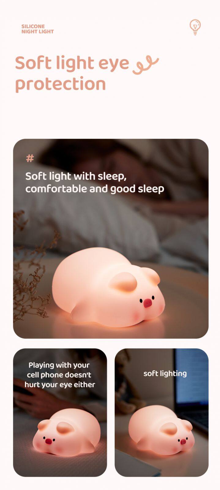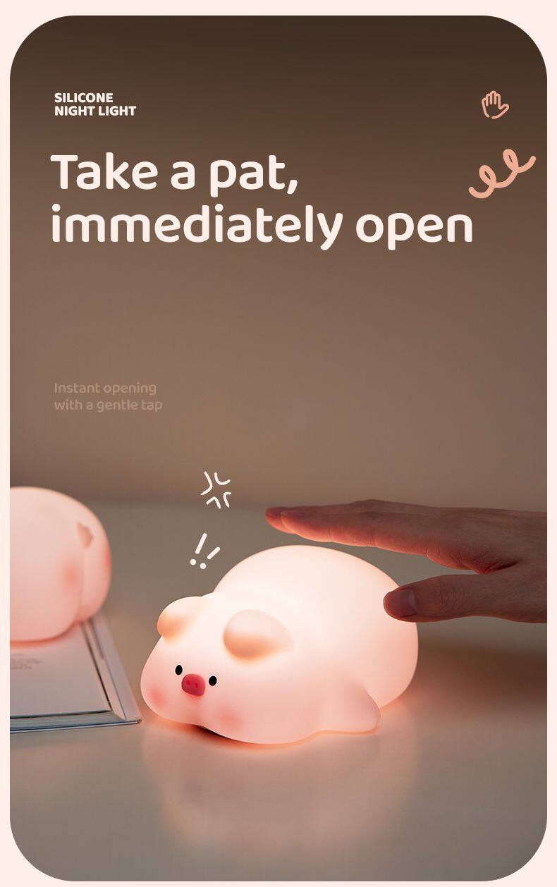 EGOGO Kawaii Christmas Pig Mini Night Light Portable Food Grade Silicone Smart Animal Touch Lamp for Children and Toddlers