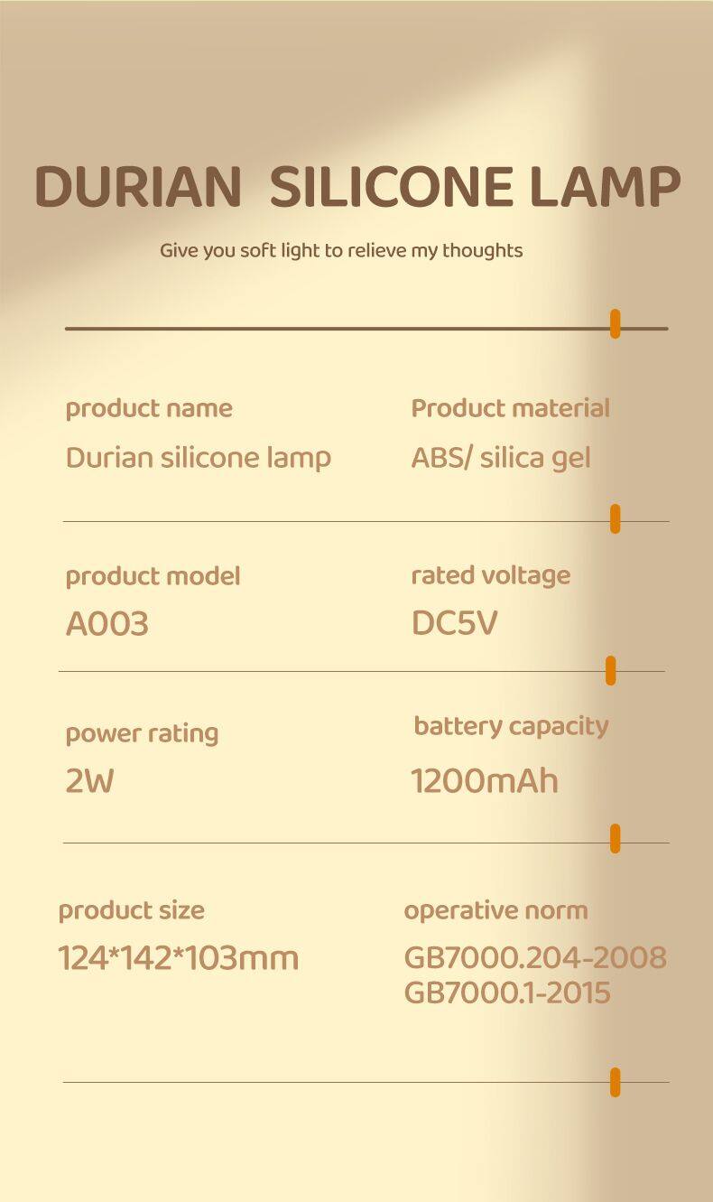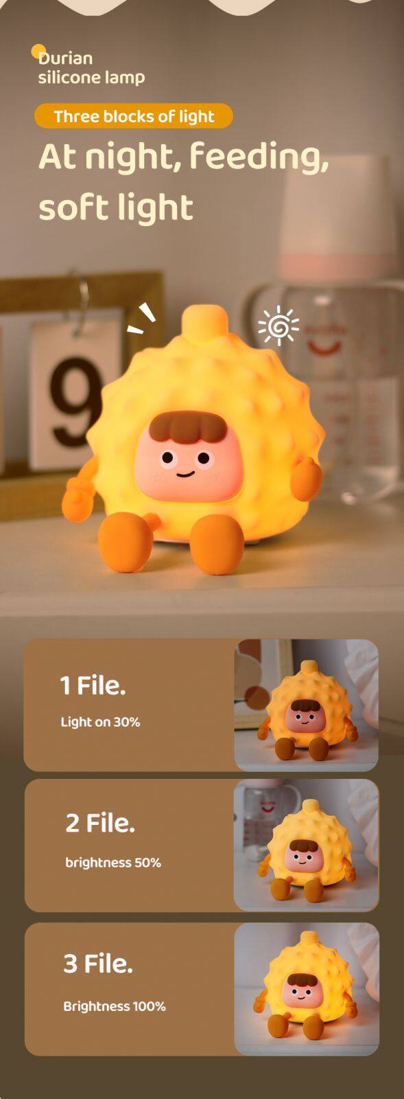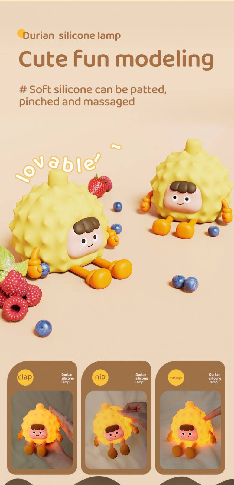Seller Cheap Personalized Baby Sleeping Lamp Rechargeable Cute Fruit Durian Silicone Small Night Light Touch Sensor Kids Lamp