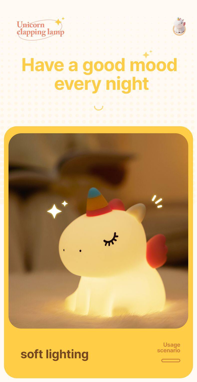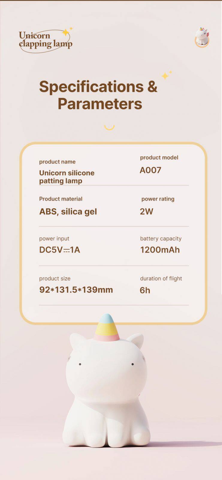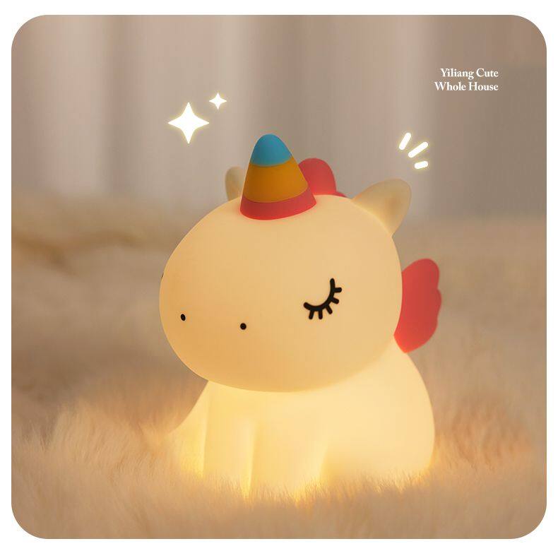 New Unicorn Silicone Nursery Night Light USB Rechargeable Cartoon Animal Bedroom Decor Touch Night Lamp Kawaii Kids Night Lights