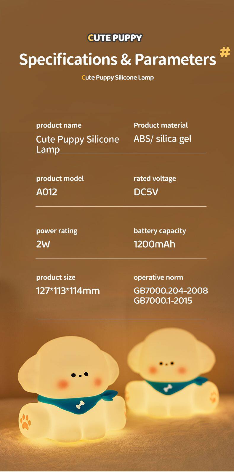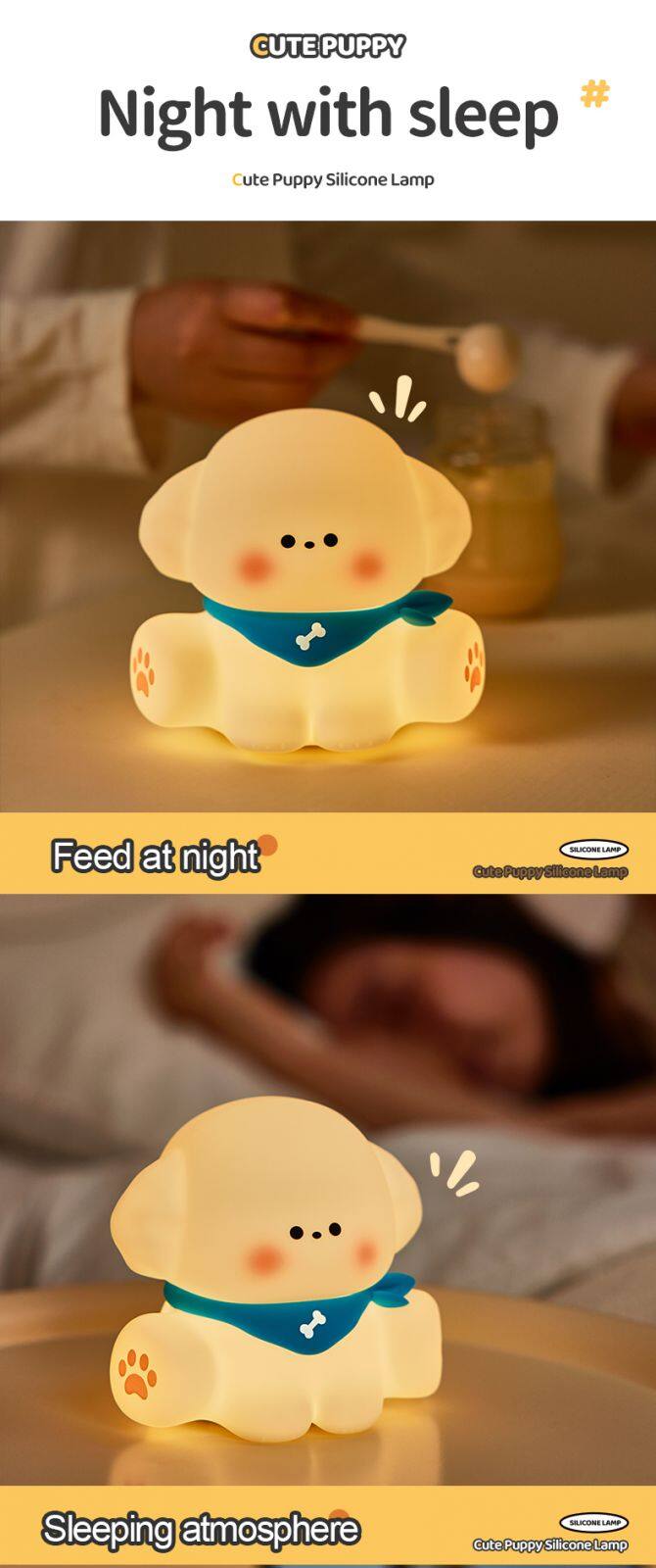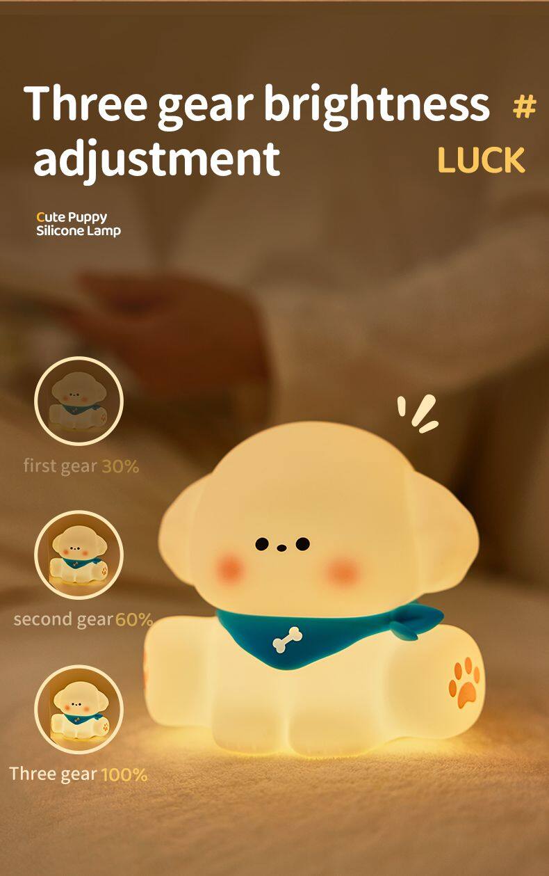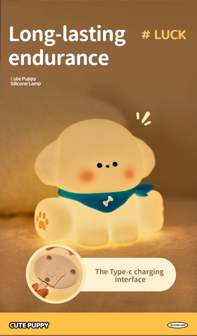 Cartoon Puppy Dimmable Cute Dog Silicone LED USB Rechargeable Animal Night Lamp for Kids Bedroom Gift