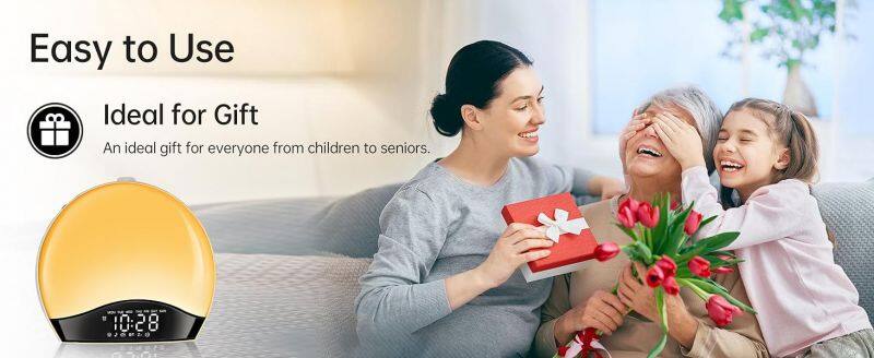- NEW Arrival Sunrise Alarm Clock Wake Up Light With Sunrise Colourful Bedside Lamp Sunset Night Light FM Radio Clock