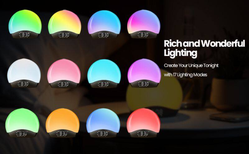 - RGB Sunrise Alarm Clock Wake Up Light With LED Sunrise Colorful Bedside Lamp Sunset Night Light Natural Lights