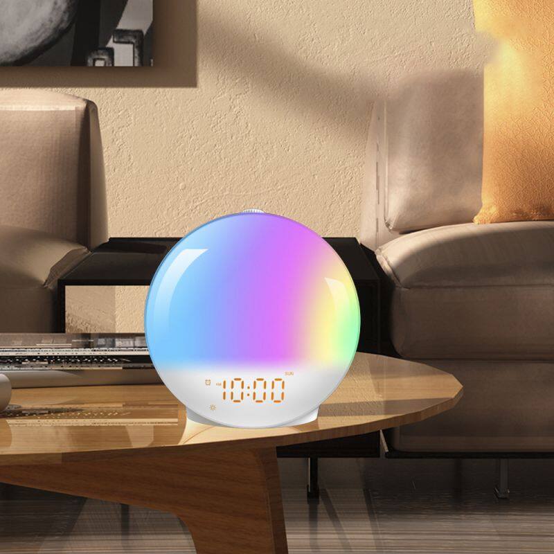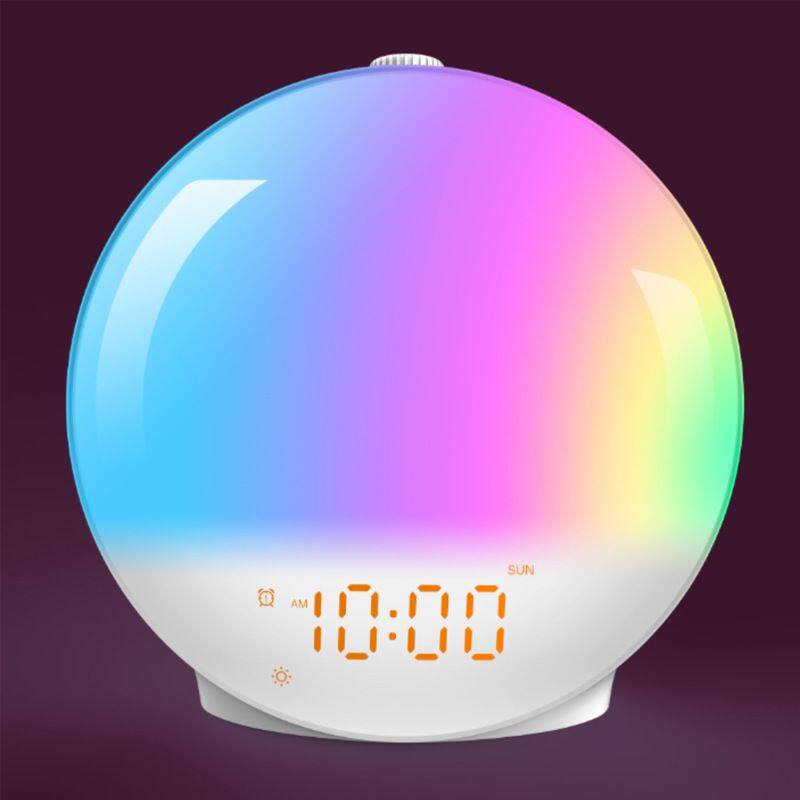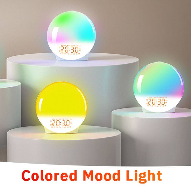 - RGB Sunrise Alarm Clock Wake Up Light With LED Sunrise Colorful Bedside Lamp Sunset Night Light Natural Lights