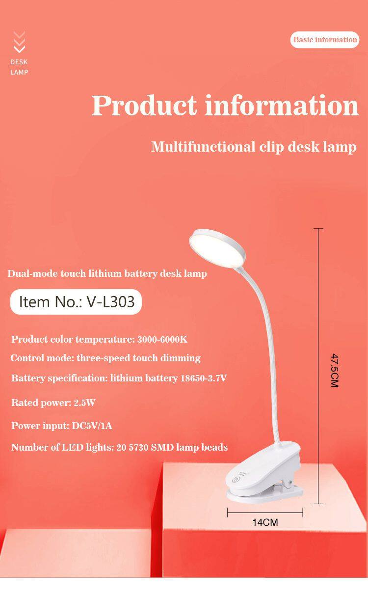 Children Desk Eye Protection Battery Rechargeable Reading Led Night Light Clip Lamp Table Led Child Table Lamp Factory