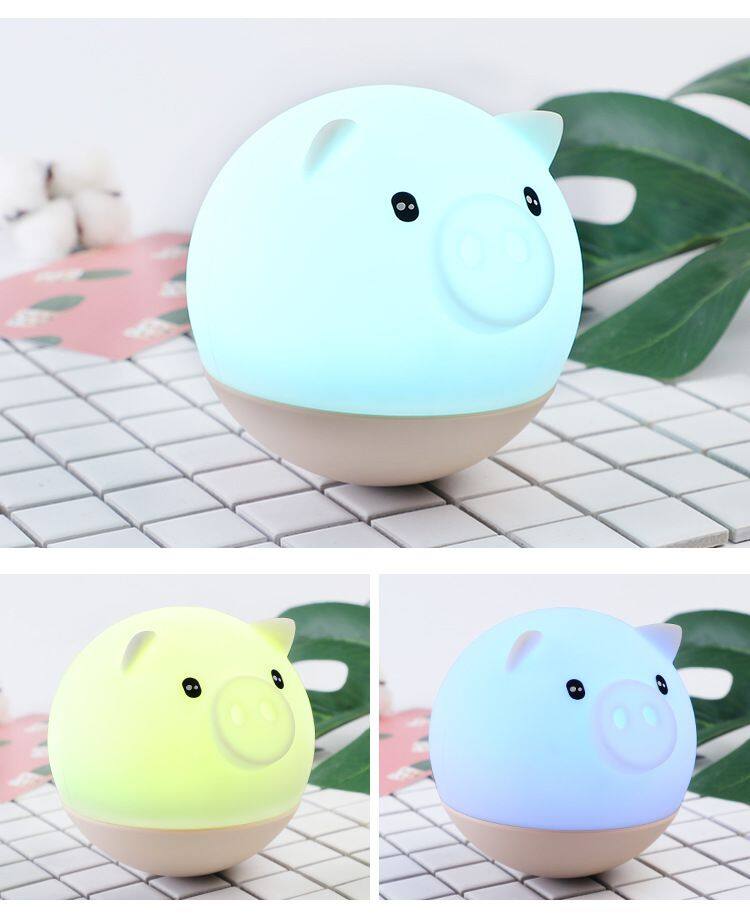 Dropshipping Night Light Silicone LED Lamp Colorful Cute Cartoon Pig Touch Sensor USB Charging Silicon For Kids Gift