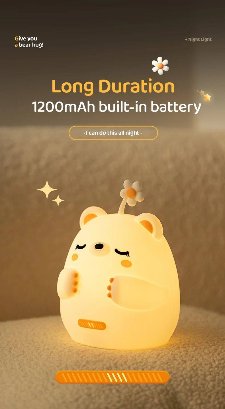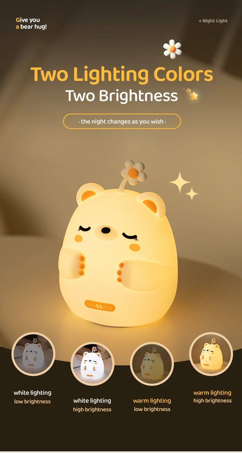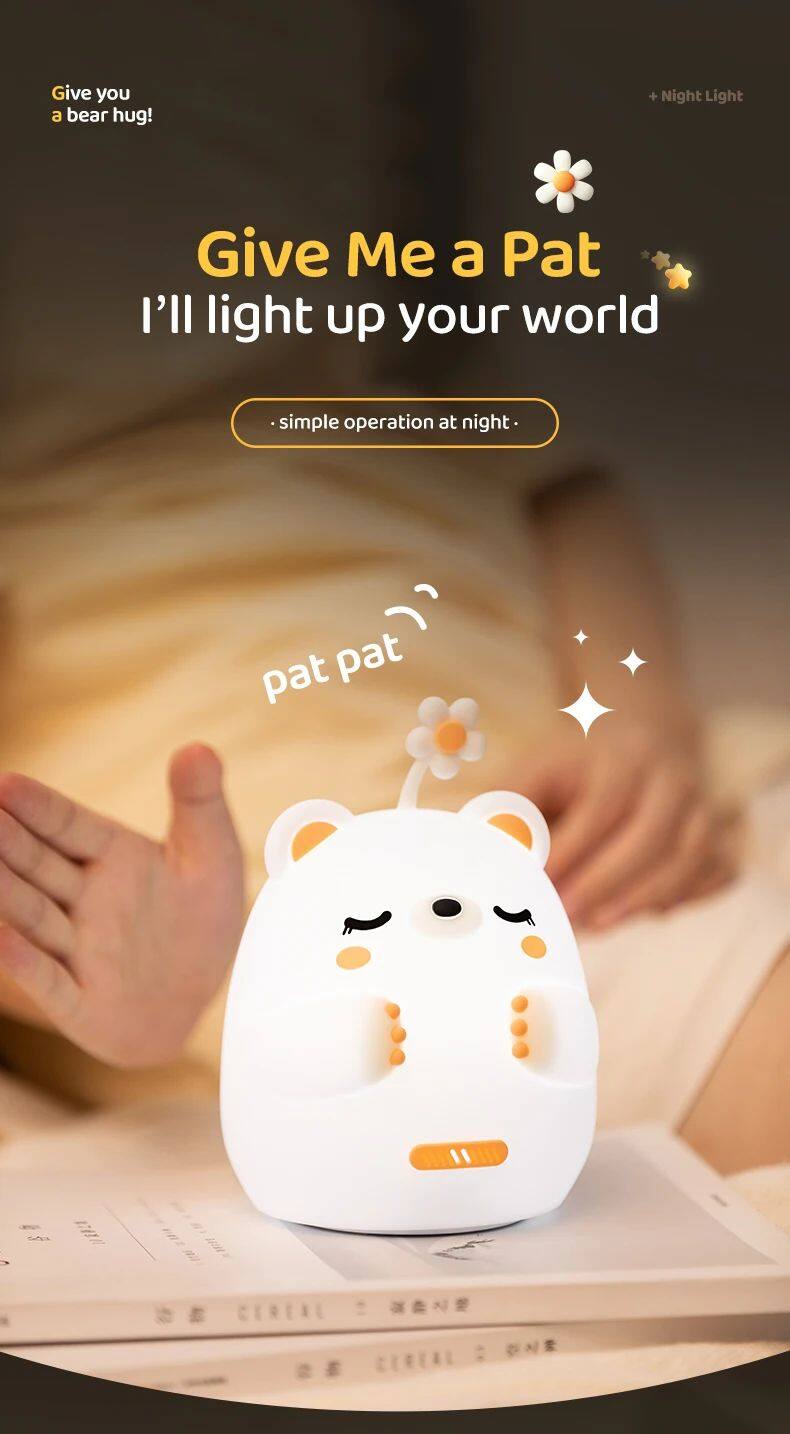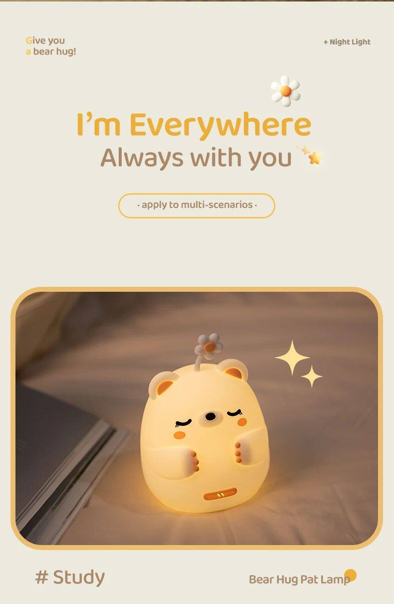 High Quality LED USB Rechargeable Soft Silicone Night Light Cartoon Bear Patting Lamp Bedroom Decor Touch Sensor Table Light